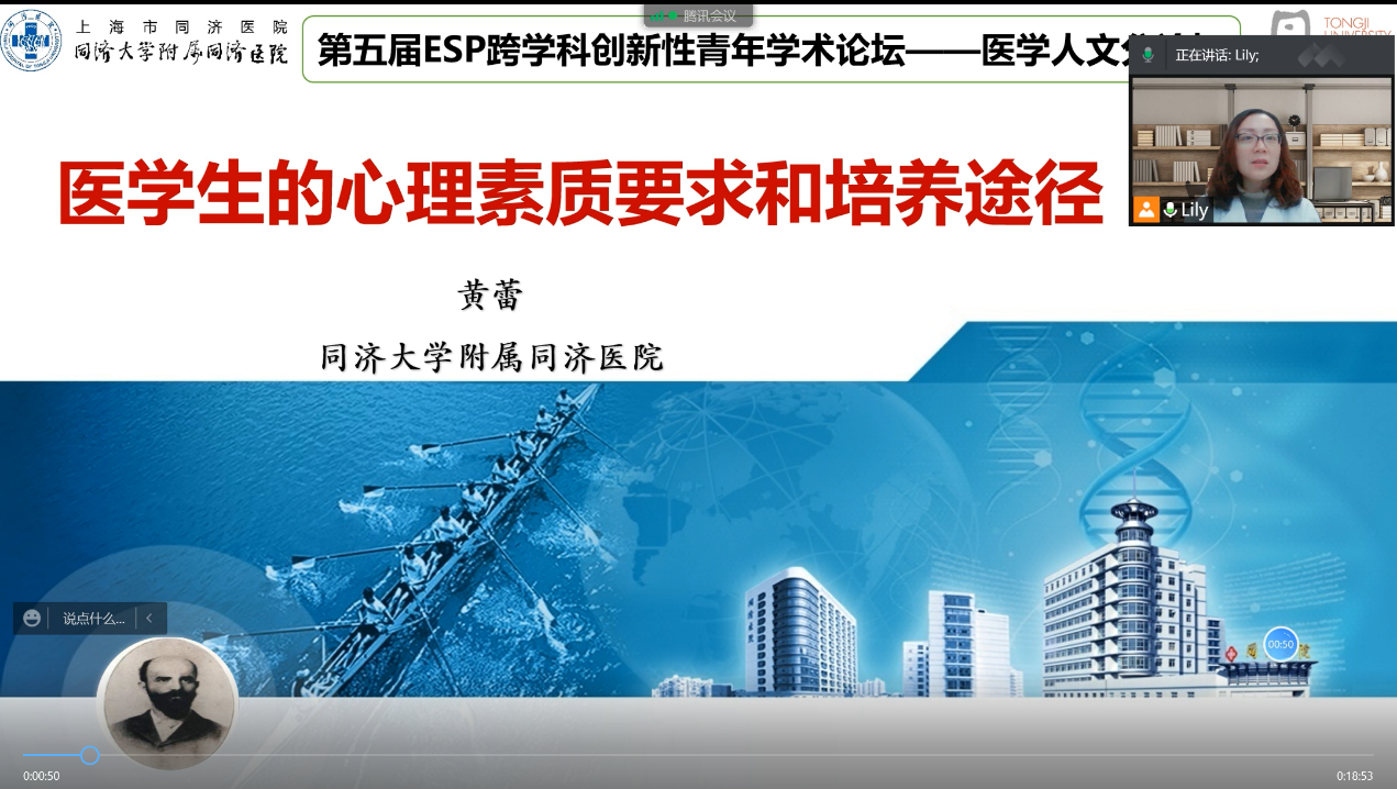 11月28日,以“医学人文”为主题的第五届ESP跨学科创新性青年学术论坛医学人文分论坛在太阳成tyc122cc举办。论坛由上海市科学技术协会指导,上海市科技翻译学会主办,太阳成tyc122cc承办,太阳成tyc122cc外语教学部、太阳成tyc122cc马克思主义公司和同济大学医公司协办,并得到了相关高等院校和职能部门的关心和支持。上海市科技翻译学会副理事长兼秘书长、中国翻译协会资深翻译家翁国强教授,同济大学附属同济医院教务处副处长黄蕾教授,太阳成tyc122cc太阳成tyc122cc党总支副书记罗瑾琰老师、太阳成tyc122cc外语教学部阮俊斌老师、太阳成tyc122cc牛静雅老师等专业学者出席。太阳成tyc122cc施雨欣同学主持论坛。