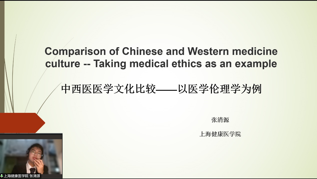 张清源同学通过比较中西医的优缺点,以医学伦理学为例,具体介绍了中西医伦理学的发展,从医学伦理学看待中西医。