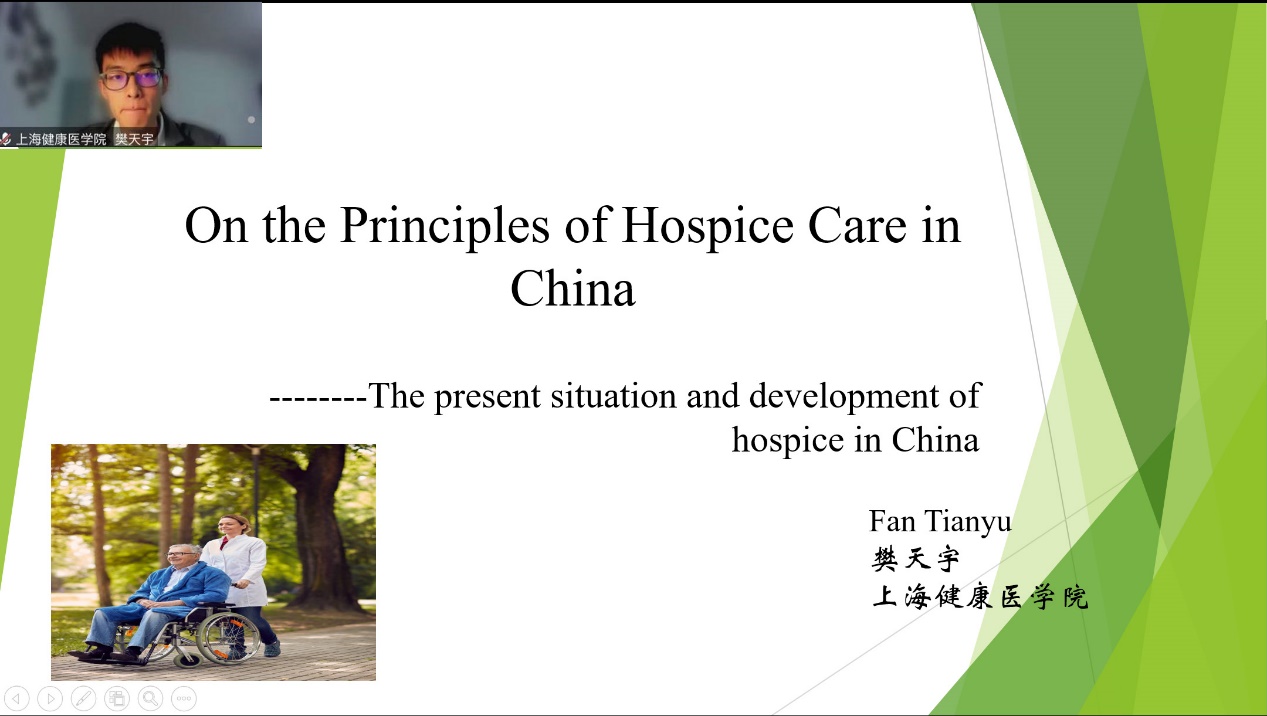 樊天宇同学对我国临终关怀事业政策与未来发展进行客观解读与分析,并提出自己的见解,认为我们医务工作者应该花更多时间和精力以培养更深的临终关怀意识。