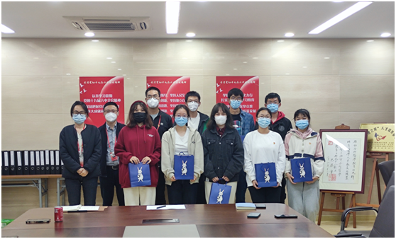 4月19日晚,公司党总支副书记贺民、罗瑾琰,辅导员高旻杰、邵佳毅在7号楼411会议室通过线下线下结合的方式,慰问了坚守在校园疫情防控一线的青年员工志愿者们,并为他们送上慰问品。