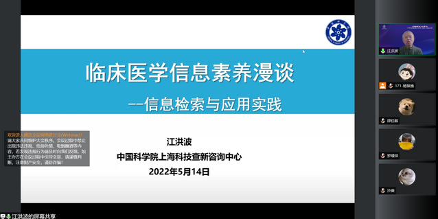 来自中国科公司上海科技查新咨询中心的江洪波博士为同学们带来了临床医学信息素养漫谈。江洪波博士主要从信息素养概述、临床医学信息来源、临床医学信息获取以及临床医学信息评估四个方面向同学们讲授了有关临床医学信息素养的知识。