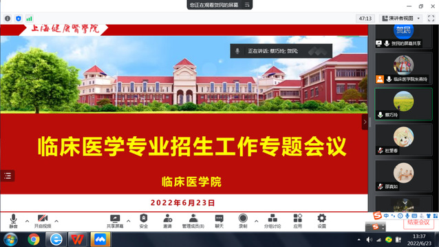 6月24日上午,公司邀请部分兄弟公司(部),召开了临床医学专业招生介绍专题会。2022年,临床医学专业招生计划共涉及六个外省,分别由医学影像公司、药公司、医学技术公司、基础医公司、文理教学部对接招生工作,相关公司(部)负责招生专员参会。会上,蔡巧玲经理从临床医学专业基本情况、专业特色、教学基地、国际合作以及就业率等考生所关心的热点问题,向相关招生专员做了介绍,以便更好的回答考生关于临床医学专业的问题。