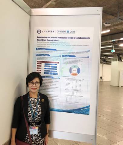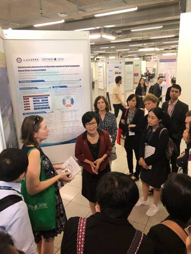 会上,公司“基于社区的早期接触临床教育体系的构建与实践(Construction and practice of education system of early community based clinic contact, ECBCC)”在大会上以海报形式进行交流。ECBCC的核心内容为,围绕着早期全科医学教育,我们基于“医学导论”和“早期临床实践”两门课程,在“公司—医院—社区”联盟教学基地的三级保障下,通过递进式POIS四种方法(PBL,Observation,Interview,Service)的综合应用,实现5个教学内涵。ECBCC也是公司2018年获得上海市教学成果一等奖的核心内容。会议期间,ECBCC获得参会代表的关注和兴趣,大家就医员工在社区卫生中心的学习安排、叙事医学的探索、社会机构如何合作等问题与蔡巧玲经理进行了交流和互动。