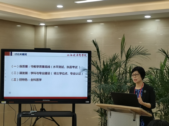在讨论交流环节,各附属医院、临床教学基地围绕公司产品、临床医学学位点建设、全科医学团队建设等问题展开了热烈讨论,提出了宝贵的意见建议。一是围绕促进临床医学专业公司产品发展,必须夯实临床教学内涵建设,发挥内、外、妇、儿教研室核心主干作用,临床教学体系建设落到实处,提升临床教学质量控制;二是围绕促进临床医学学位点建设,必须要创新思维和工作方式,综合研判和论证学位点建设中团队队伍、科学研究、人才培养、社会服务、学术影响的特色优势和问题;以学位点建设为契机促进学科的长远发展,搭建更加完善的高层次人才培养体系。三是围绕开拓以“全科医学”为特色,推进“5+3”一体化全科医师培养;加强政策支持和资金投入引进全科医学带头人,引领学科持续发展、不断创新;加强全科医学基地建设和社区卫生服务中心建设,围绕基层常见慢性病,多发病开展相关科学研究,发挥上海市全科医学教育与研究中心作用,服务五大新城发展。